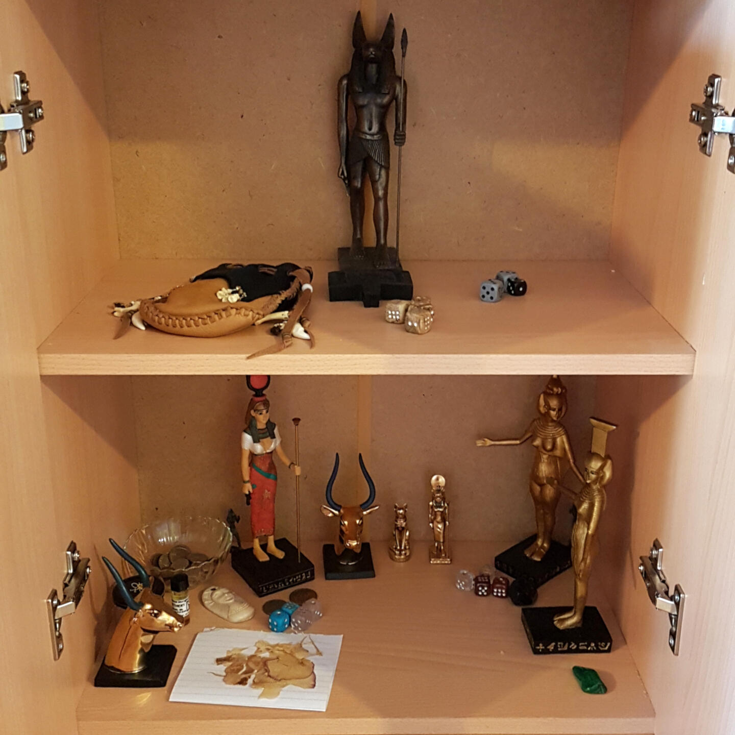 ◽My particular form of Wepwawet is Wepiu, whose name means "The Divider/Judge/Opener". Some more historical information on him can be found here, but my experience with him various from a great King and Judge on his throne, to a heart-warming source of light and joy, to a very friendly and casual friend full of banter.◽Hethert-Amenti is Hethert as Mistress of the West, guardian and greeter of those recently deceased. However, when I asked her to be my Beloved, while she came to me as Hethert-Amenti, she was clear that this is not the only face that she is coming to me with. But that all of her forms and faces would be important. Hethert seems to be available for divination on a cyclic basis. Depending on which half of the year it is, either myself or my headmate Sekhemib may take on the request.◽The Akhu are, in my experience, extremely honest. Don't ask a question if you don't want to know the answer! I also find them to be very "loud", but this is mostly my experience as the diviner.
